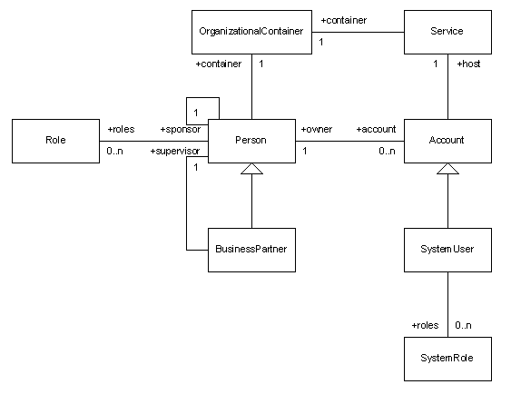 An entity represents one entry of the data model, such as an identity, account, or service. Once a client obtains an instance of one of these entities, they can retrieve both Identity Manager specific attributes and custom attributes that describe it. An Identity Manager specific attribute is one that is used by Identity Manager for its internal business logic, such as an account�s status, or for navigating relationships, such as determining a business partner�s sponsor. A custom attribute is one that is not used within Identity Manager business logic, but is made available when the customer for business reasons extends the Identity Manager schema. Since these attributes may be relevant to business logic extensions making use of this API, an interface is provided to retrieve them. The UML class diagram in Figure 1 below illustrates the primary entities available in the API and their relationships. There are several more entities available in the API that are not shown in this diagram, but are documented in this package.